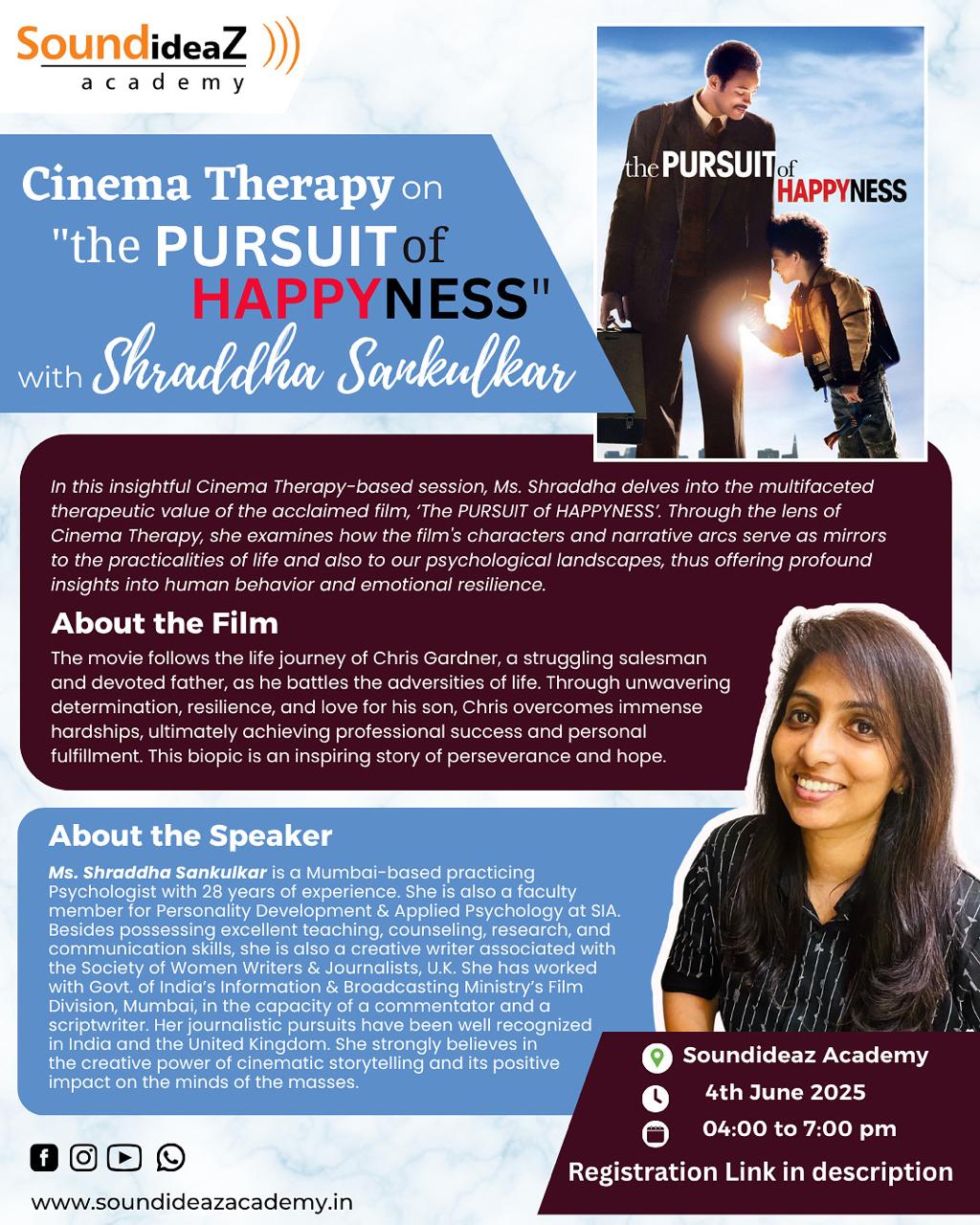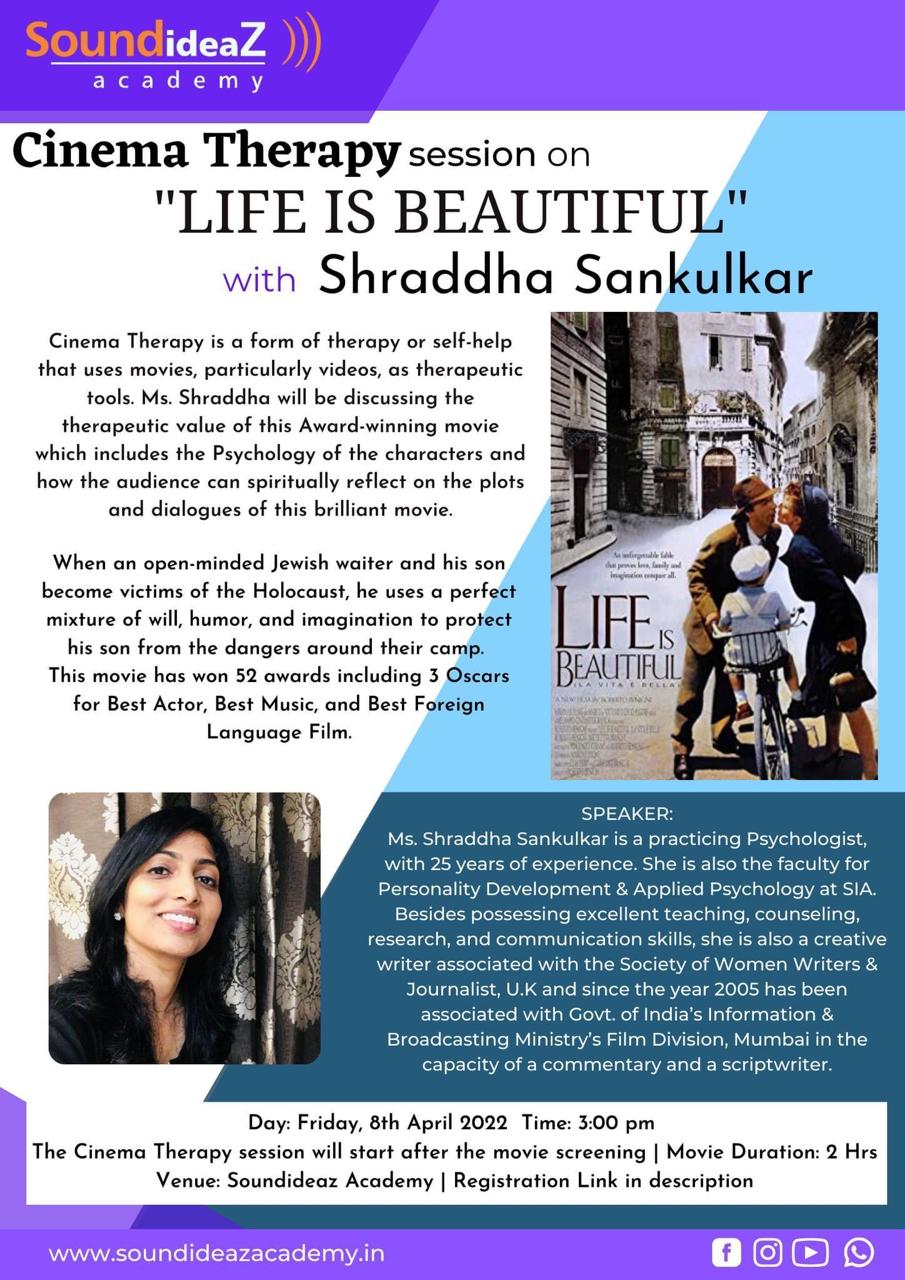 Cinema therapy, also known as ‘movie therapy’ or ‘reel therapy’, is a form of expressive therapy that uses films as therapeutic tools to address psychological and life issues. It can be used as a self-help method or integrated into psychotherapy to promote healing, emotional release, and personal growth. Cinema therapy uses the power of storytelling, imagery, and music in films to consciously/subconsciously influence emotions, thoughts, and behaviors to generate the healing and restoration process of the mind.
